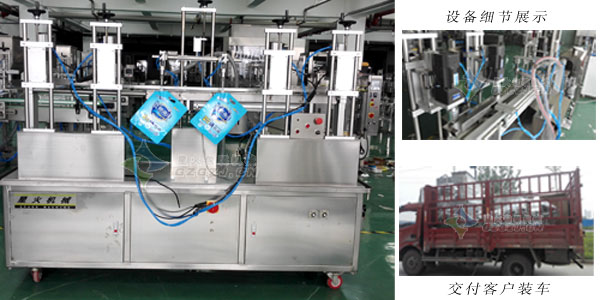 設(shè)備優(yōu)勢(shì): 1、該機(jī)電器及氣動(dòng)元件使用國(guó)內(nèi)外知名品牌產(chǎn)品,氣缸,電磁閥使用亞德客,電器正泰,觸摸屏poc開(kāi)關(guān)使用歐姆龍等。 2、可吸嘴自立袋豆奶灌裝機(jī)的自動(dòng)旋蓋裝置具有自動(dòng)打滑功能,旋蓋頭可以調(diào)節(jié)旋轉(zhuǎn)力大小,并有凹槽解決卡蓋問(wèn)題確保每個(gè)蓋子精準(zhǔn)鎖蓋。