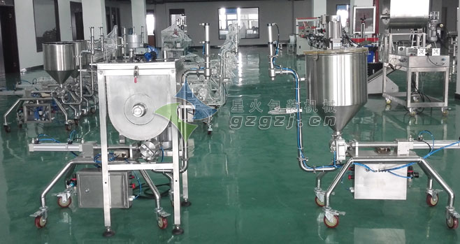 本機(jī)采用微機(jī)(PLC)控制,具有生產(chǎn)效率高、計量精確等特點。是粘稠醬料產(chǎn)品,尤其是帶有顆粒的醬料最理想的灌裝機(jī)。|