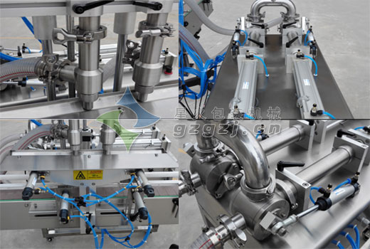 雙頭臥式攪拌直線醬料灌裝機細節(jié)圖解: