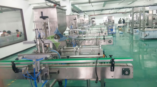 雙頭臥式攪拌直線醬料灌裝機車間展示: