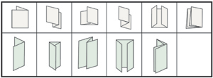 原理及特點: DZ系列自動折紙機設(shè)計先進、制造精良、可用于設(shè)計范圍內(nèi)各種不同尺寸和厚薄紙張的折疊、可折成圖例所示六種式樣。調(diào)整簡便,送紙流暢,無級調(diào)速,輕巧高效。