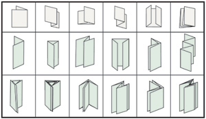 原理及特點: ZE系列自動拆紙機(jī)設(shè)計先進(jìn)、制造精良,可用于設(shè)計范圍內(nèi)各種不同尺寸和厚度紙張的折疊,可折成圖例所示的12種式樣。調(diào)整簡便,送紙流暢,無級調(diào)速,輕巧高效。